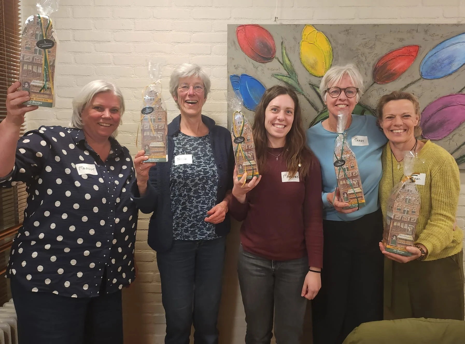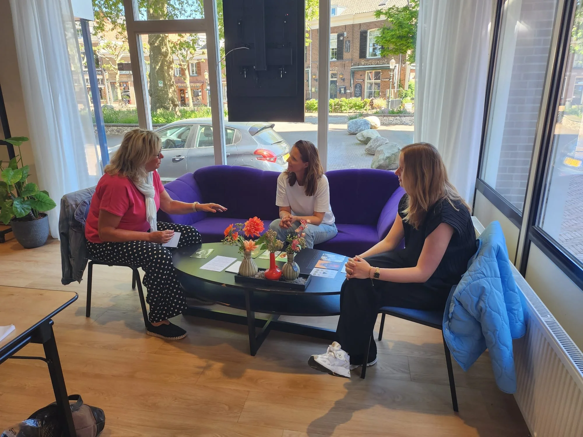 Projectcoördinator Chloe (links) met co-onderzoekers in Harderwijk